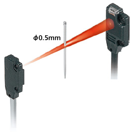光擴散角度約是以往產(chǎn)品的1/2,無需狹縫罩,即可檢測到?0.5mm的微小工件。